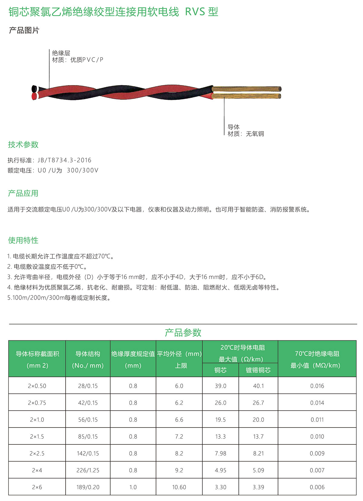 铜芯聚氯乙烯绝缘绞型连接用软电线-RVS型