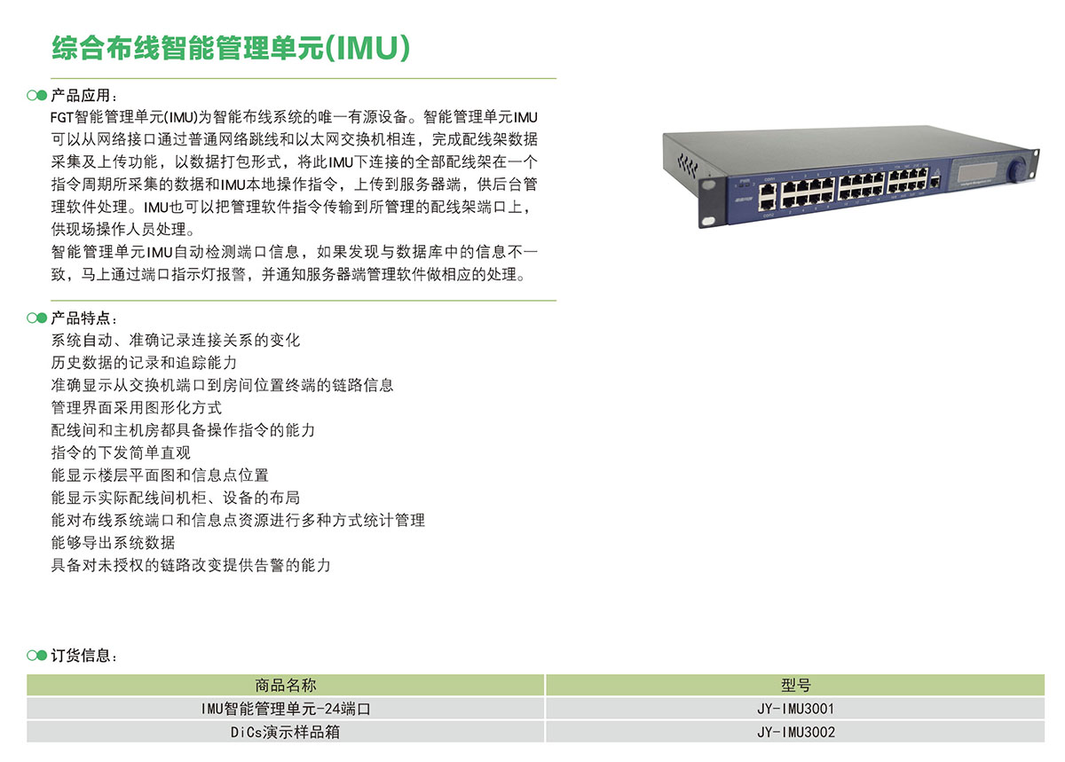 > 综合布线智能管理单元(IMU)