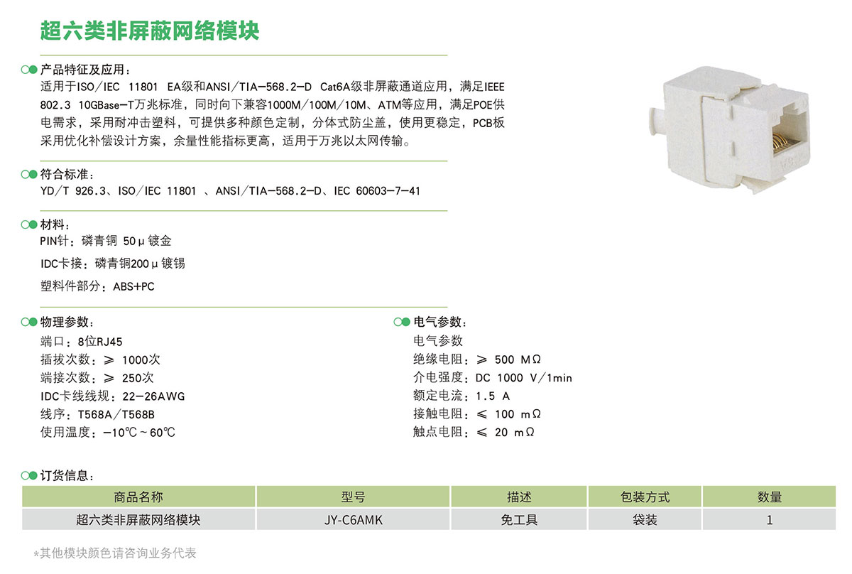 超六类非屏蔽网络模块