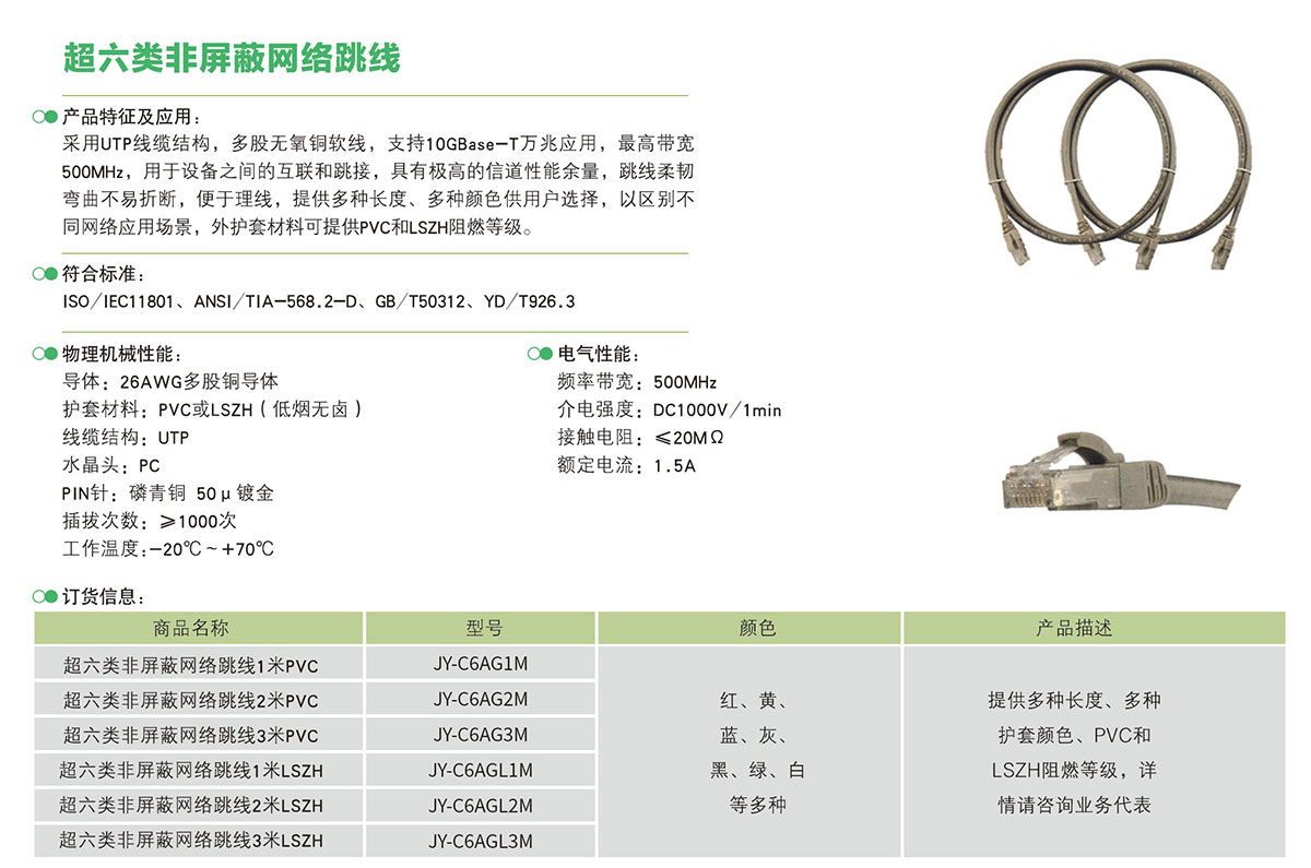> 超六类非屏蔽网络跳线
