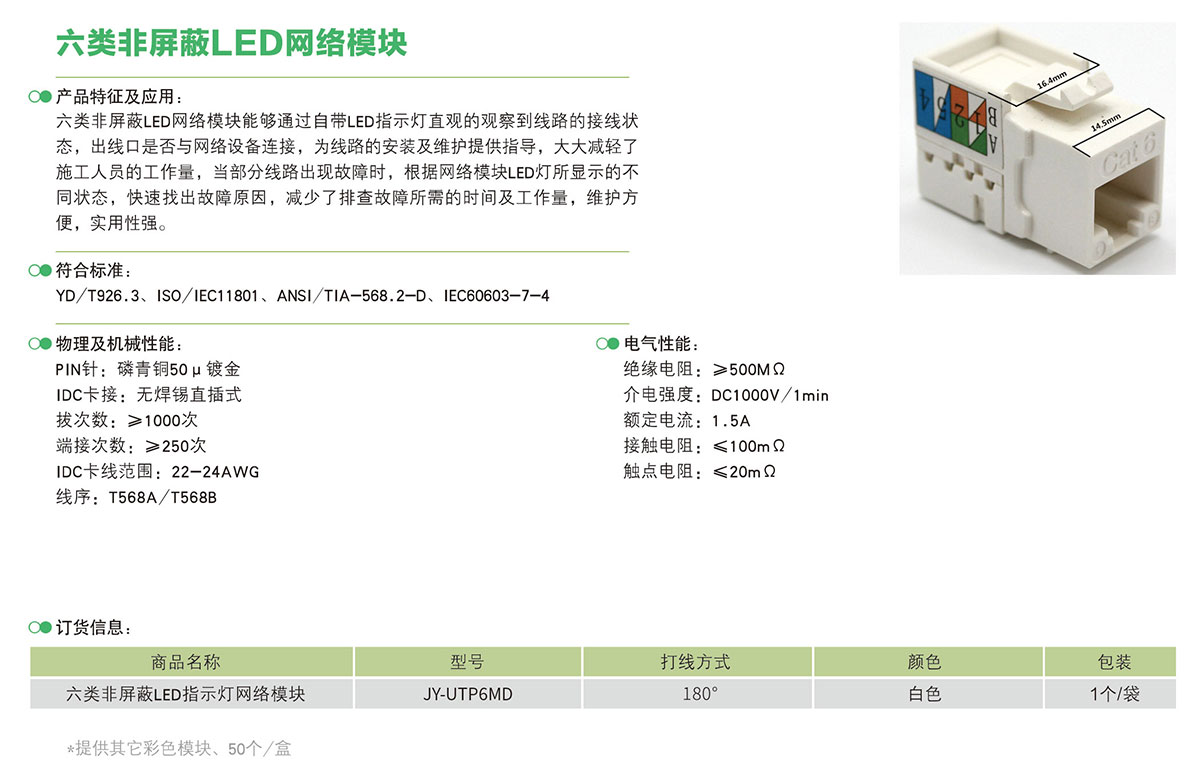 > 六类非屏蔽LED网络模块