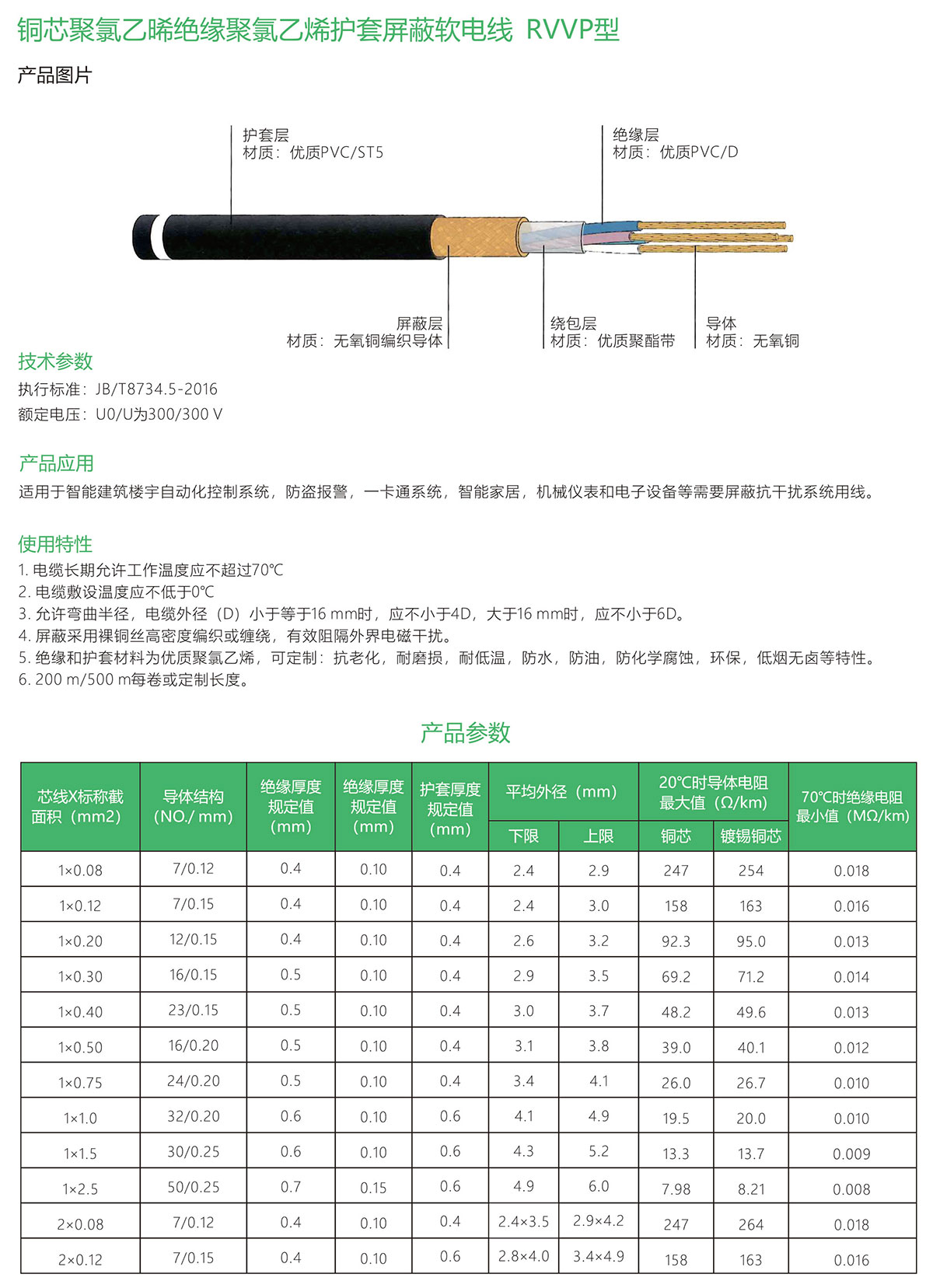 > 铜芯聚氯乙烯绝缘聚氟乙烯护套屏蔽软电线-RVVP型