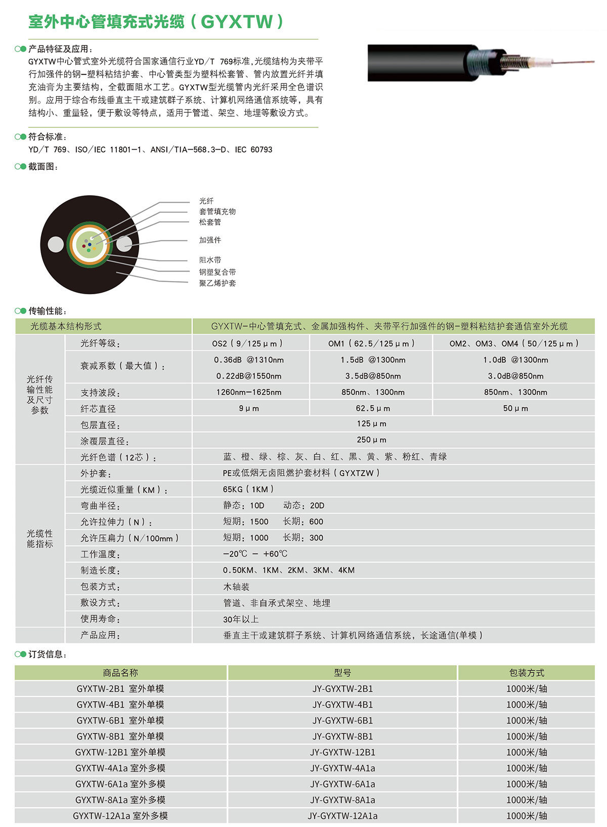 室外中心管填充式光缆(GYXTW)