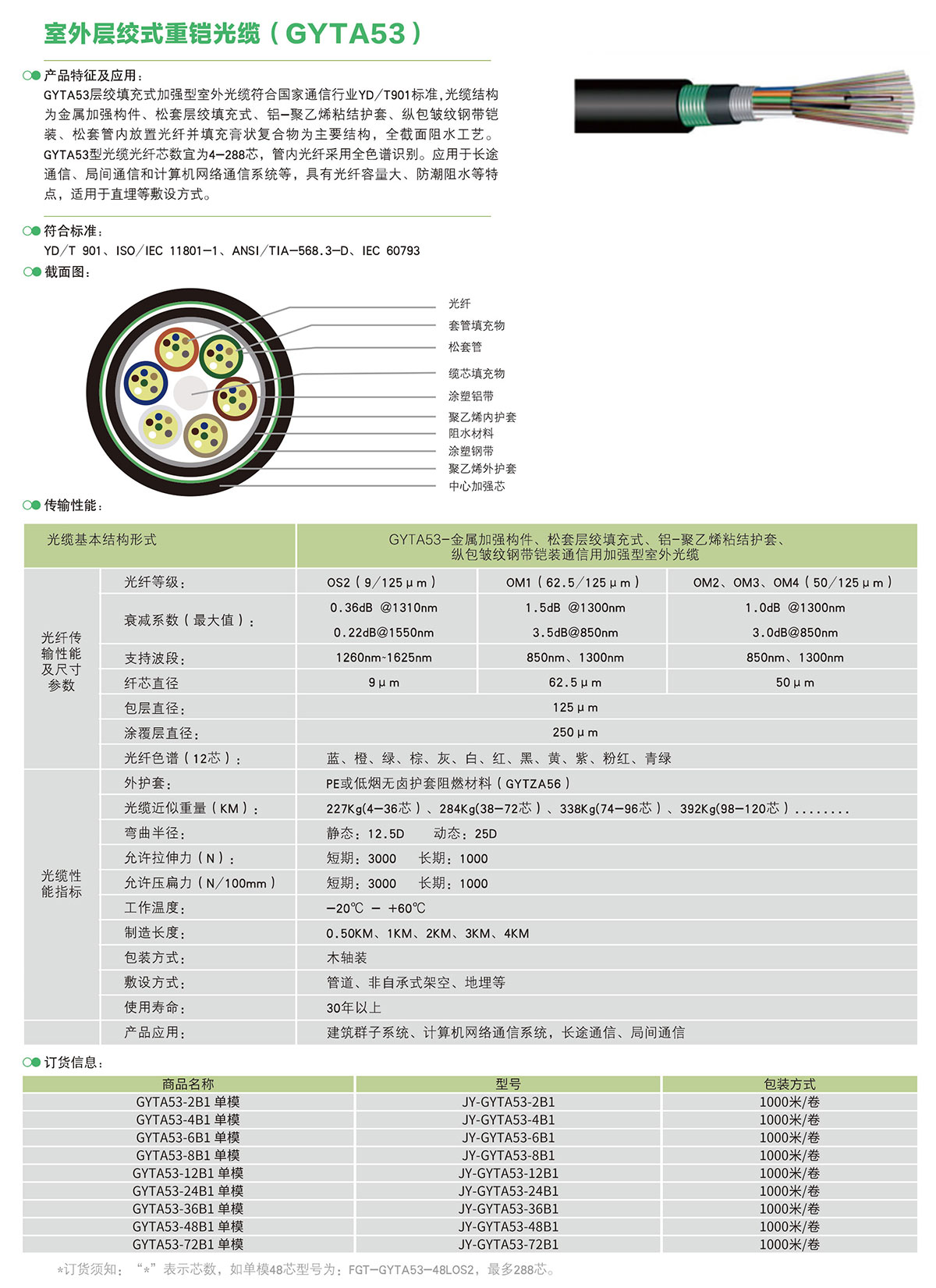 室外中心管填充式光缆(GYXTW)
