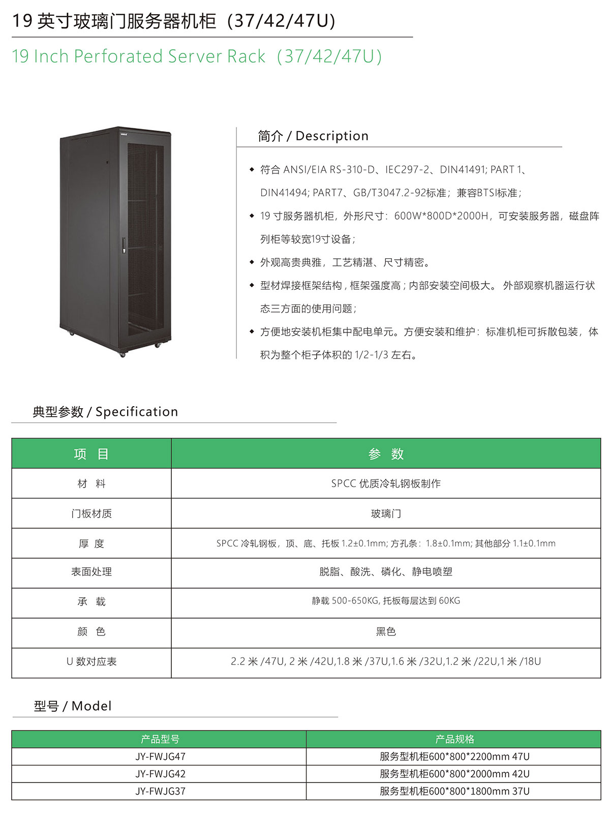 19英寸玻璃门标准机柜